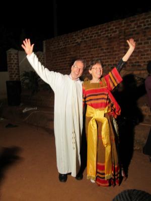 Am Abend hatten wir noch ein sehr gutes afrikanisches Essen in Luwafu bei dieser Familie, die uns auch am Flughafen abholte. Kaum zuhause angekommen, hörten wir schon das "Rauschen" der Reifenluft. Ein Nagel der im Reifen steckte gab den Männern (zwei Afrikanern und Urs) noch eine harte Nachtarbeit, denn die Schrauben waren ganz schwer zu lösen. Ich (Ursula) durfte zum Glück ins Bett schlief auch sofort ein, hörte nicht einmal das Einschalten des Generators von unseren Nachbarn, den Urs fast aus dem Bett warf. Heute hatten wir "Bürotag" hier in unserem Zimmer, der Bürotisch war unser Bett (geht eigentlich ganz gut) Ab und zu kam mal so ein Gefühl des Heimweh`s (wird es wohl ab und zu mal geben!)