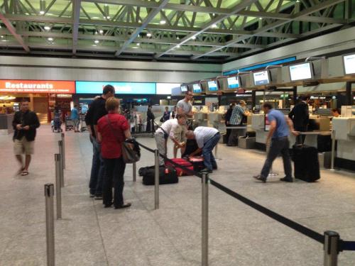 Danke Euch Freunde und Familie für die Begleitung auf den Flughafen. Wir haben uns darüber sehr gefreut. Doch, wir hatten schon eine Waage zuhause, aber wir dachten( ! ), dass die auf dem Flughafen sicher ein Auge zudrücken werden. Ja, die Zeiten haben sich geändert, für Tanzania ging das noch gut - ist halt auch schon eine Weile her. Für`s nächste Mal wissen wir es!!