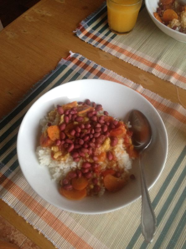 Ein gutes Abendessen mit Reis,Tomaten und Erdnüssen war unser fast krönender Abschluss. Jetzt werden wir zusammen noch ein kleines Fläschchen Sekt trinken, das auch ein Grund unseres Übergewichtes war.